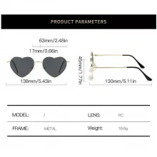 Step into the spotlight with our latest collection of heart-shaped sunglasses, designed for the fashion-forward woman. These sunglasses are more than just a statement piece; they’re an expression of personality and style. With their unique heart design, colorful luxury resin lenses, and durable metal frame, they’re the perfect accessory to elevate any outfit. Whether you’re lounging by the pool, attending a festival, or just out for a casual day, these sunglasses are designed to make you stand out.