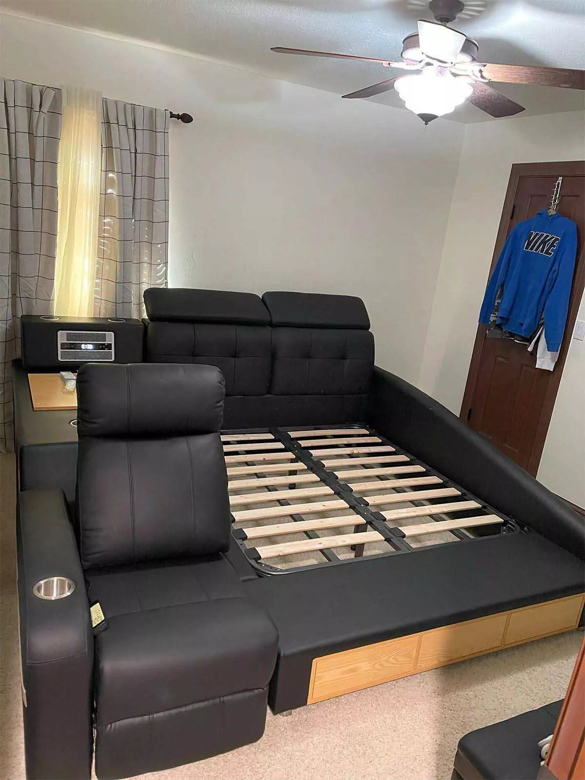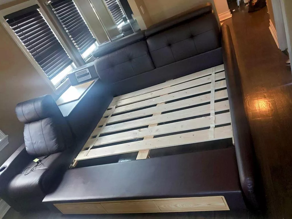 Great design, comfortable to sleep on, and the storage is incredibly convenient for extra pillows and blankets