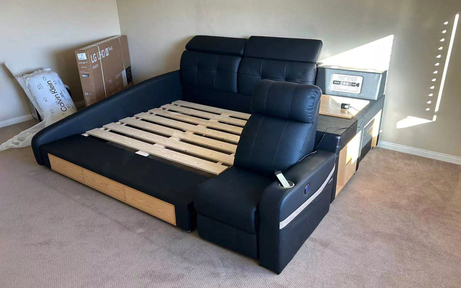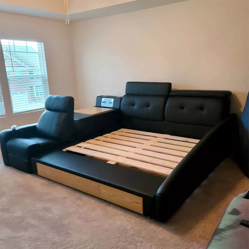 From the moment I laid eyes on this bed, I knew it was something special. The construction is solid and reassuringly sturdy, with the fine leather upholstery adding a layer of sophistication and luxury. The storage space is both ample and easy to access, making clutter a thing of the past. However, it's the massage feature that truly transforms the experience, offering a touch of indulgence and relaxation that has become the highlight of my evenings. The bed’s design cleverly balances luxury and practicality, making it a stellar addition to any bedroom.