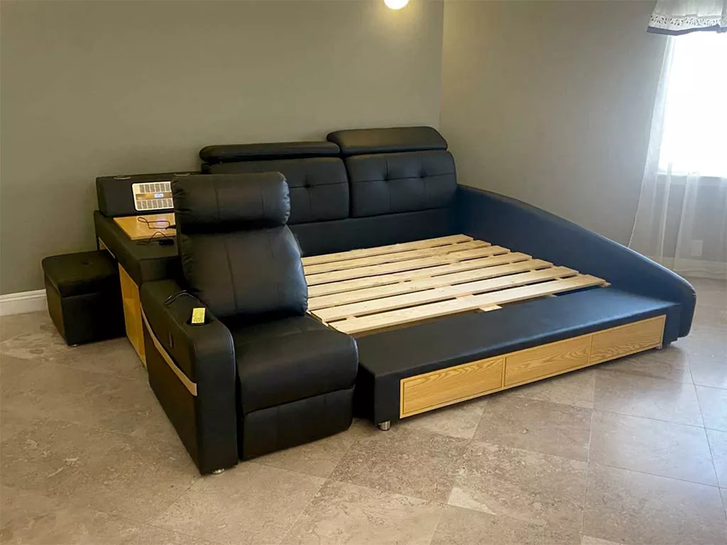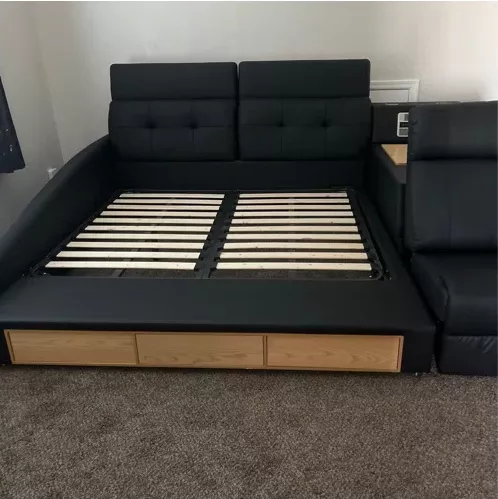 This bed has been a game-changer for me. Its robust frame ensures stability and longevity, while the genuine leather upholstery adds an element of opulence. The storage is cleverly integrated, providing ample space for essentials, and the massage feature is a revelation, offering relaxation on demand. The attention to detail in the design and functionality of this bed is impressive, making it not just a piece of furniture, but a lifestyle enhancement that has significantly improved my quality of life and sleep