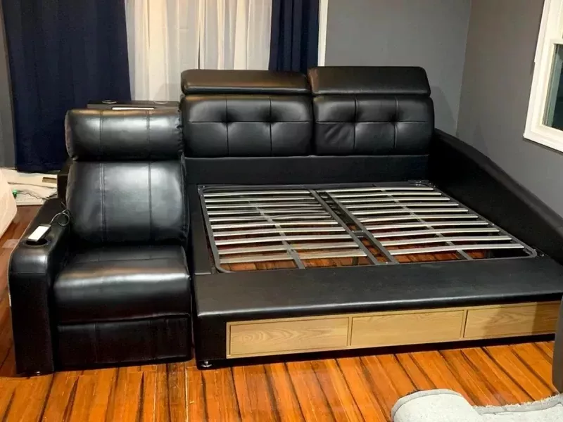 From the moment I got this bed, my sleep has never been the same. The solid wood construction ensures stability, while the genuine leather adds a layer of elegance to my bedroom. The integrated storage space is incredibly useful, helping me to declutter and organize with ease. But the real treat is the massage feature, which offers a level of relaxation and comfort I hadn't experienced before. This bed is not just furniture; it's a lifestyle upgrade that has significantly improved my sleep quality and bedroom aesthetics