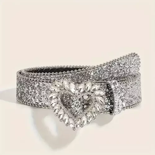 Luxury Punk Rhinestone Belt with Heart Buckle