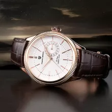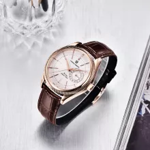 This luxury quartz watch is more than just a stylish accessory. Its combination of Japanese precision with robust construction makes it an exceptional piece for men who value both performance and aesthetics. The leather band adds a touch of classic refinement, ensuring comfort throughout the day, while the shock-resistant feature and durable case guarantee that it stands the test of time, no matter the activity. It’s a timepiece that suits every occasion, from a business meeting to a weekend adventure.