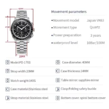 Our watch boasts an array of impressive features. The 40mm dial, encased in robust stainless steel and protected by scratch-resistant sapphire crystal, ensures durability and clarity. The sleek 20mm stainless steel band, coupled with a folding clasp with safety, provides both comfort and security on your wrist. Its 13mm case thickness strikes the perfect balance between a bold statement and refined taste.