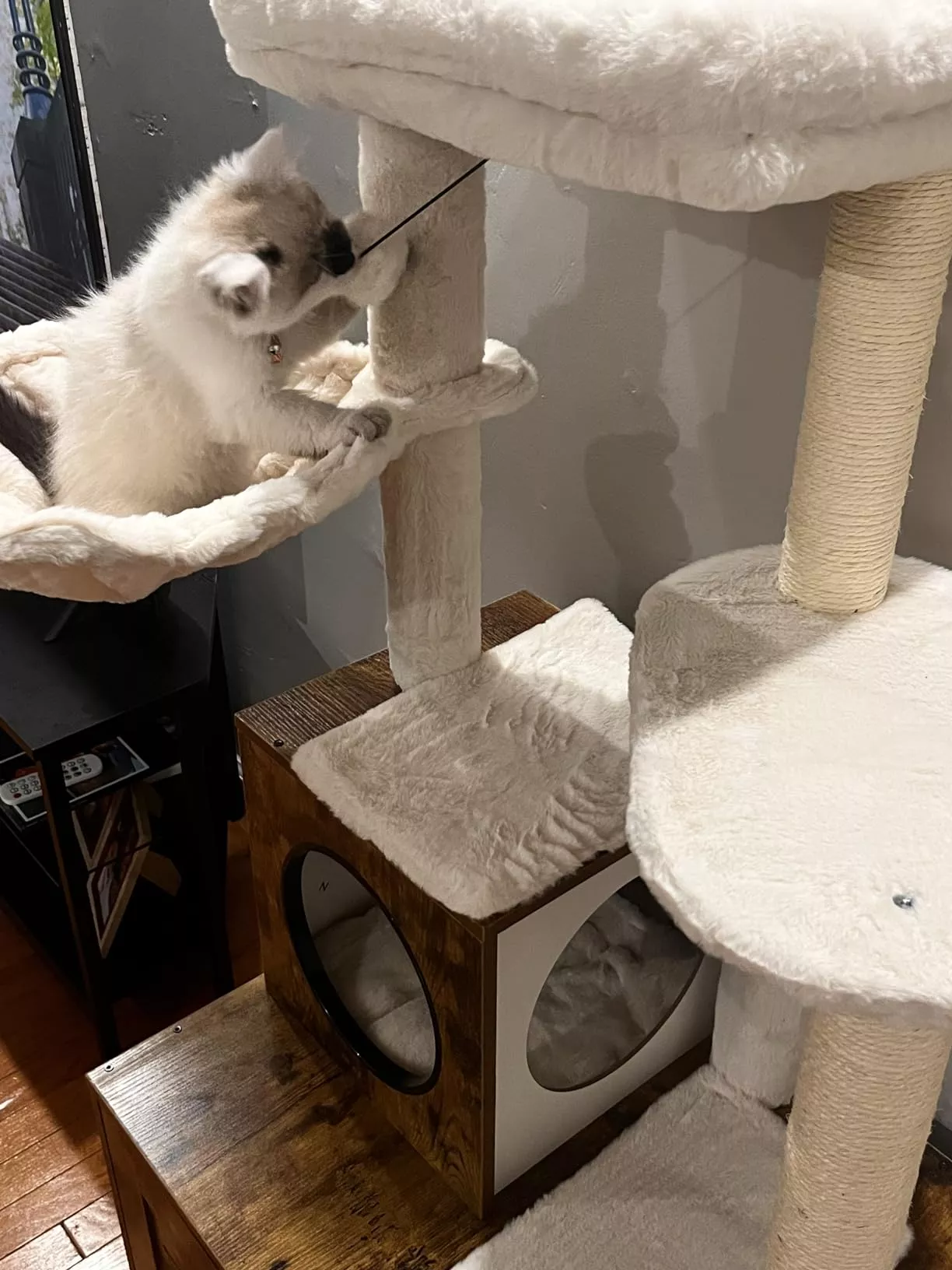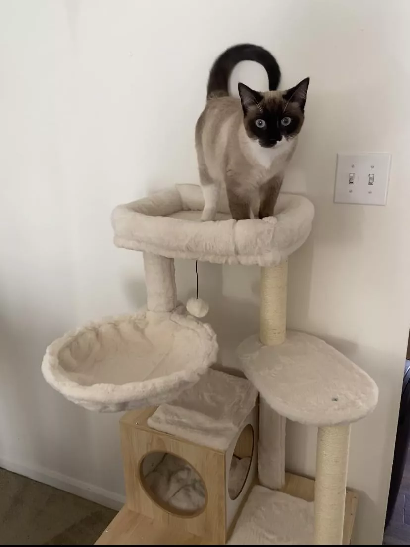 Really enjoy these setup posts. This is my second one and it's gorgeous. All three of my cats are into it. Even the biggest one manages to fit on top. Perfect for my 8kg cat. Arrived on time, package was in good shape, and nothing was missing. Very satisfied.