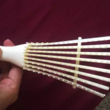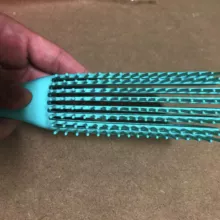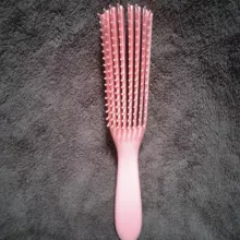 I love these detangling combs. They make the process much easier because the flexible rows of bristles apply tension but loosen if it gets caught. The typical brush only loosens bristle by bristle. You can adjust how much tension by only using the end of the brush or more tension if you brush close to the handle These rows of bristles can also be locked in they the included brace. There are two “settings” to place the brace so you can choose how you want for the amount of curl in the hair. The brush material is a flexible plastic and non-porous, not silicone or rubber. So it can be disinfected through immersion. Overall, this is a good comb for personal or professional use on not just curls, but all hair types to avoid developing traction issues with combing wet hair.