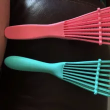 My daughter and I have SUPER curly hair. She’s 10 and learning to take care of it herself. She often doesn’t get conditioner worked all the way through, resulting in a tangled mess. I ordered this 2 pack so she’d have one brush in the shower (to brush the conditioner through) and one for when she got out so I could make sure she got all the tangles out. We used it last night and it worked PERFECT! I love he fact that it’s plastic so I can clean it easily and that it’s curved. Highly recommend!!!