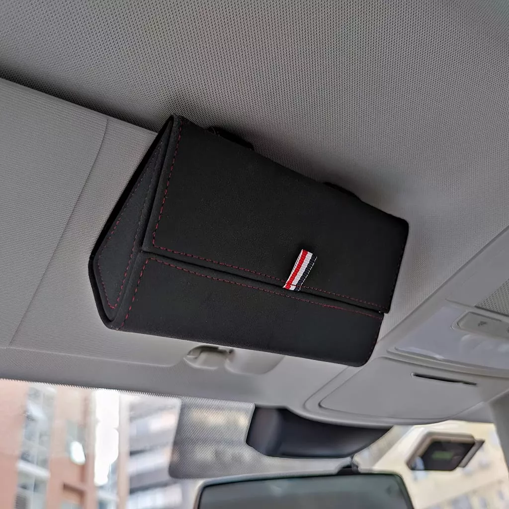 This is a great car interior organizational tool. The quality of the materials and manufacture is excellent - it feels sturdy and substantial, yet still lightweight enough to hang on the car visor without issue. The interior is made from a soft, velvety fabric that does a great job of protecting sunglasses from scratches. The well thought-out magnetic clasp makes it easy to open and close one-handed and still holds the case securely closed when not in use. Installation and removal are a cinch - just clip it to your visor and go. If your car doesn't have a sunglasses holder - or even if it does and you just need another one - this is a great choice. Highly recommend!