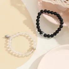 Each set includes two elegantly crafted bracelets, adorned with 8mm glass beads that shimmer with every turn. The heart of these bracelets lies in their magnetic charm, designed to attract and bind, symbolizing the unbreakable bond between loved ones. Constructed with a durable zinc alloy and devoid of any clasp, these bracelets offer both style and comfort, ensuring a secure fit for any wrist size. Their unique beaded chain adds a trendy touch to any outfit, making them not just a piece of jewelry but a fashion statement.