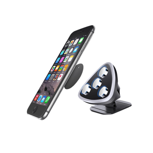 Our Magnetic Triangle Phone Mount features a sticky bottom that adheres soundly to your dashboard with ease.