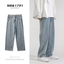 Men’s Korean Style Baggy Jeans – Versatile Straight-Leg Denim