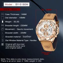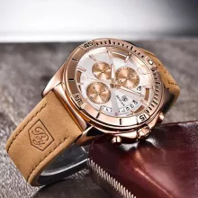 This watch isn’t just about telling time – it’s about making a statement. Perfect for both casual and formal wear, its versatile design can complement any outfit. The quartz movement guarantees reliable timekeeping, while the durable stainless steel case and leather band ensure long-lasting wear. Ideal for the active man, its chronograph function, water resistance, and shock-resistant build mean it can handle your toughest days. Plus, with luminous hands, you’ll never struggle to read the time, even in low-light conditions.