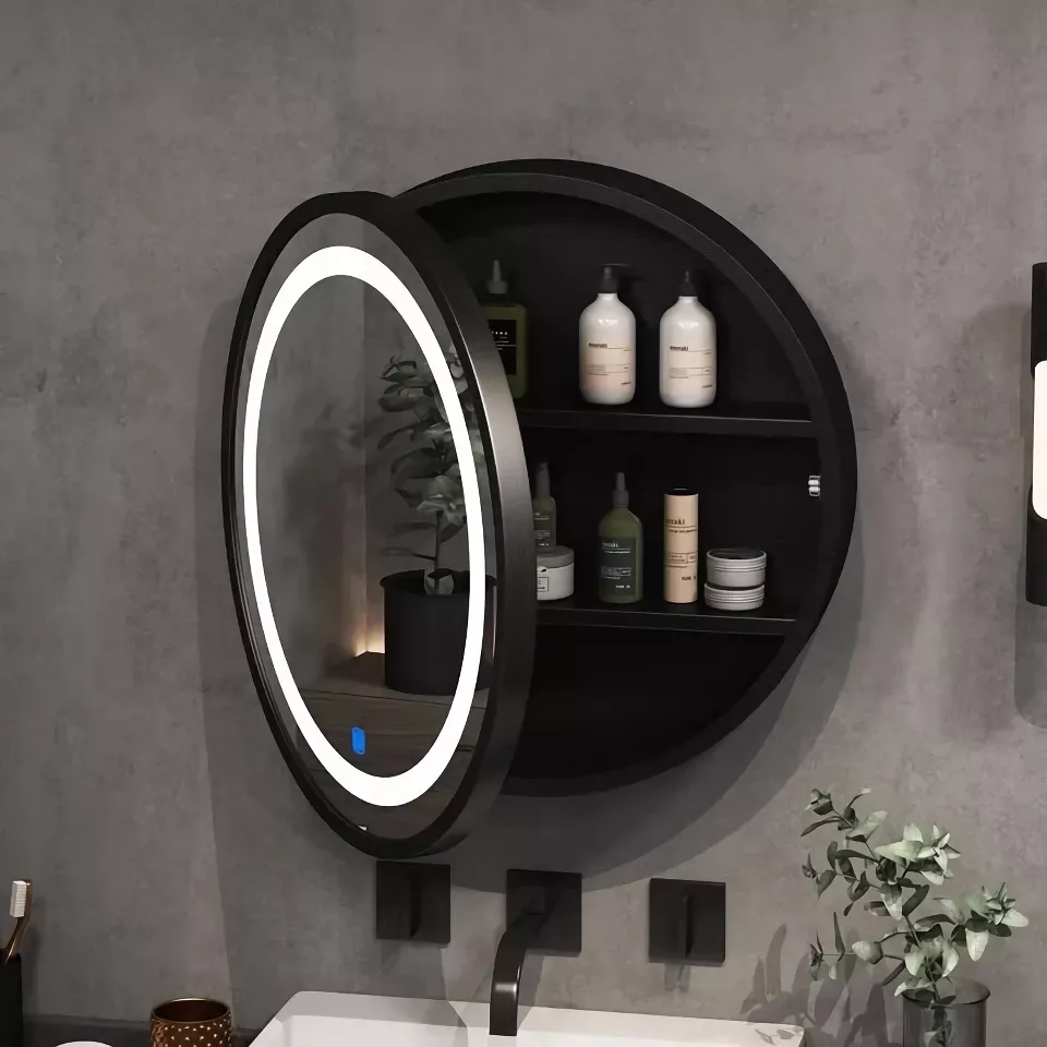 Discover the perfect blend of style and practicality with our Modern Oval LED Illuminated Wooden Mirror Cabinet. This smart bathroom storage solution adds a touch of modern elegance to any bathroom, enhancing both its functionality and aesthetics. Whether you’re getting ready for the day or unwinding in the evening, this cabinet provides the ideal ambiance and convenience.