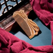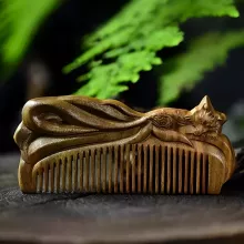 Embrace the beauty of tradition and craftsmanship with this exquisite Green Sandalwood Hand-Carved Hair Comb. Designed to not only style your hair but also promote scalp health, this natural wood comb is delicately hand-carved with a beautiful fox motif, making it a unique and thoughtful gift for Valentine’s Day or any special occasion. Sandalwood is known for its calming properties, helping to reduce tension, headaches, and even hair loss, making this comb more than just a styling tool. Its smooth, anti-static design ensures that your hair remains tangle-free without snagging, while also delivering a soothing massage to your scalp.