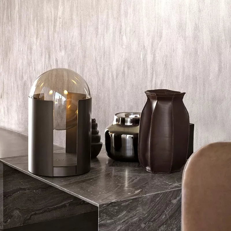 The lamp’s eye-catching design features high-quality glass in cognac or transparent colors, complemented by a sturdy iron base. The LED lighting technology ensures long-lasting, energy-efficient illumination. Its unique shape and elegant glass shades make it a statement piece that effortlessly enhances the style of your room.