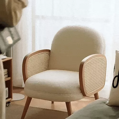 Nordic Rattan Leisure Single Sofa Chair – Solid Wood, Modern Fabric Design