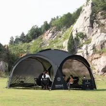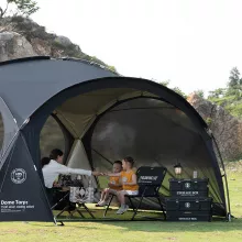 Our Outdoor Dome Canopy is made from durable 600D Oxford fabric with a reflective mylar coating, providing excellent waterproof and weather-resistant properties. The titanium alloy poles ensure a robust and stable structure, while the quick automatic opening system allows for effortless setup. With three bedrooms and one living room, this tent offers plenty of space for relaxation and storage.