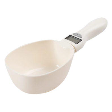 I think a wonderful idea, but sticks. I cannot use the scoop to scoop and weigh, I havs to use another scoop to gently put the dog bisciut in and it seems to get to around 65g and stops, to by pass this I have to press scoop it goes up and then comes back to a weight…but this is mainly for our holidays so that I do not have to take scales with me to weigh my dogs meals!..Love the idea just needs tweaking!..I have lived with a set of digital scales without 75g on for an eternity..I am sure I can givean extra press to vet rhe right weight! As accurate as my salter kitchen scales..once pressed and added or taken food out to get 76g..