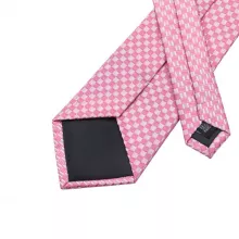 Step up your formalwear with this sophisticated pink and white plaid silk tie set, designed for the modern man who values both elegance and style. Crafted from 100% silk, this tie offers a luxurious look and feel, making it the perfect choice for weddings, parties, or any formal event. The soft silk fabric ensures a smooth drape, while the eye-catching plaid pattern adds a contemporary twist to classic formalwear. This set includes a matching handkerchief and cufflinks to complete your polished look.