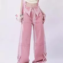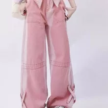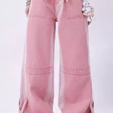 Our pink baggy jeans come with a high waist that flatters your figure, a button fly closure that adds a vintage touch, and practical pockets for your essentials. The wide-leg design ensures a comfortable, loose fit, perfect for those who value both style and comfort. From the medium wash finish that’s versatile for any outfit combination to the tasteful button and pocket decoration, these jeans are a blend of functionality and chic fashion.