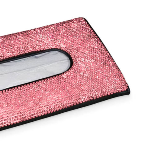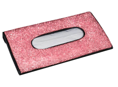 The tissue box cover is just as pictured. The pink bling is super cute. It really adds character to my car's interior. I definitely would recommend this cute little purchase.