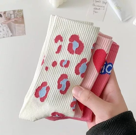 Pink Sweet Love Cotton Casual Middle Tube Socks