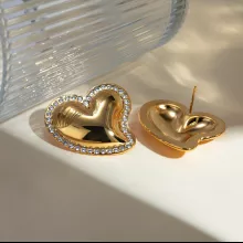 Elevate your style with these stunning 18K Gold Plated Stainless Steel Heart Stud Earrings. Featuring delicate rhinestones, a smooth finish, and a waterproof design, they are the perfect blend of elegance and durability. Don’t miss out—shop now and enjoy a piece of jewelry that combines classic charm with modern quality!