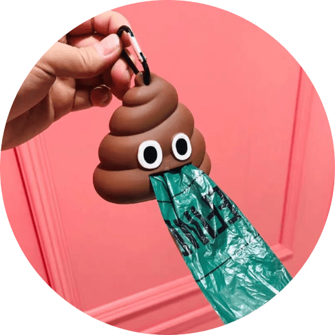 Have your waste bags always by your side neatly tucked away in this convenient storage bag in the form of a poop emoji, a cute little take on a modern solution.