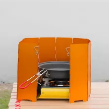 Crafted from high-quality oxidized aluminum alloy, our foldable stove windshield is both durable and lightweight. The material ensures long-lasting use while being easy to carry on your camping trips. Available in silver, red, and orange, this windscreen adds a touch of style to your outdoor gear.