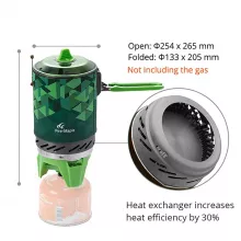 The innovative nested design allows for optimal space utilization in your backpack, while the high-efficiency heat exchanger increases the stove’s heat efficiency by 30%, ensuring faster cooking times and reduced fuel consumption. The inclusion of a durable, heat-proof, and foldable handle enhances portability and safety. Crafted from robust materials like aluminum alloy, stainless steel, and silicone, this stove is built to withstand the rigors of outdoor use.