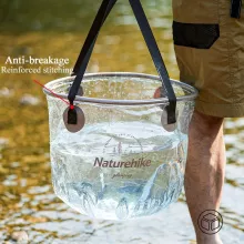 I was gifted this transparent folding bucket and wow! It's super lightweight which makes it ideal for our family camping trips. The see-through aspect is practical too, allowing me to easily check how much water we left. And when we're heading home? It packs away without any fuss due to its collapsible nature.