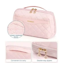 With dimensions of 10.4 x 6.1 x 4 inches, this bag is your perfect partner for a week-long trip or everyday use. It’s not just a makeup bag; its versatility extends to being a toiletry bag, travel wallet, tech accessory organizer, and more. Its fashionable design makes it a stylish accessory, no matter where you are.