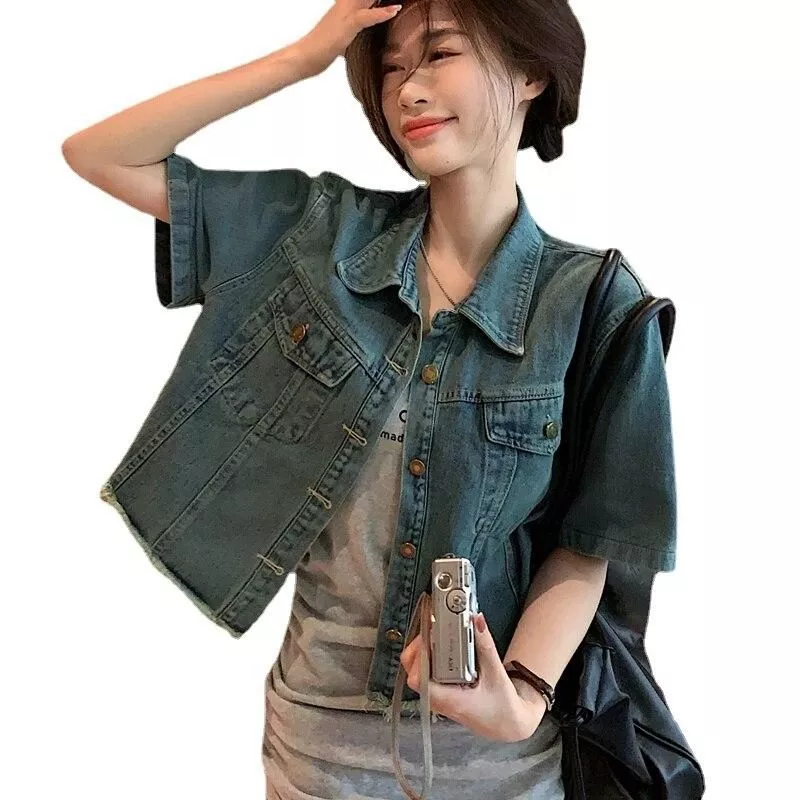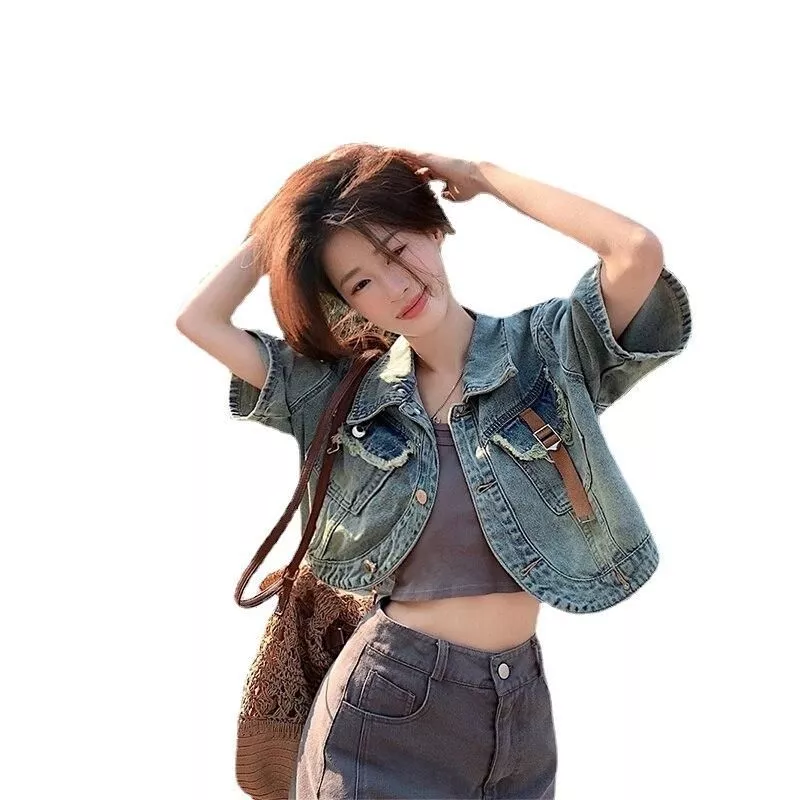 Summer 2023 Vintage-Inspired Denim Jacket – Short, Loose-Fit with Chic Rough Edges