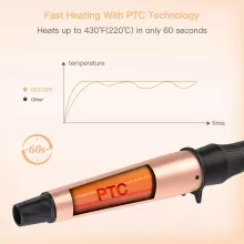 - Fast Heating: With a powerful PTC heating element, this curling iron heats up to 430°F (230°C) in just minutes, so you can style your hair quickly and efficiently.