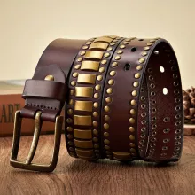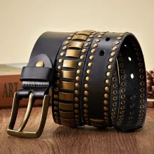 What makes this belt special is its fusion of style and functionality. The geometric pattern adds a trendy touch, while the rivets provide an edgy vibe that stands out in any setting. Plus, the high-quality cowskin ensures that it not only looks good but also lasts for years. Embrace your individuality and express your unique style with a belt that truly represents you.