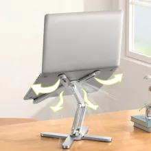 The heart of this laptop holder lies in its innovative design. Crafted from premium aluminum alloy, it boasts a sturdy yet lightweight build, perfect for the on-the-go lifestyle. The stand’s ability to rotate 360 degrees allows for effortless adjustment to your preferred viewing angle. Accommodating laptops ranging from 11 to 16 inches, it caters to a wide array of devices, ensuring a perfect fit for your laptop.