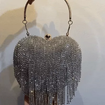 What sets this clutch apart is its unique heart pattern design, illuminated by countless rhinestones that catch the light beautifully. Its hard exterior not only protects your items but also ensures the clutch maintains its shape and sparkle throughout any event. Coupled with its elegant tassel and diamond decoration, this clutch is more than an accessory—it’s a piece of art that complements your finest moments.