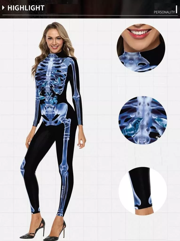 Really happy with this purchase! The jumpsuit's 3D skeleton feature added a unique touch, and it was easy to move around in.