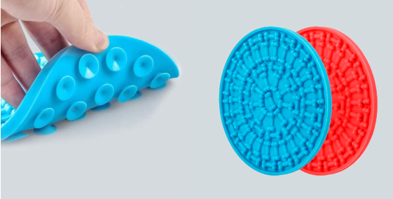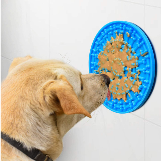Measuring 5.9 inches in diameter, our Slow-Feeding Dog Mat works great to serve a heaping dollop of peanut butter or your dog’s favorite sticky snack as a stress-reducer in any wash or groom situation that would otherwise have him or her wandering around, distracted or anxious.