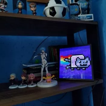 The display is cool but the app has a limited number of animations/images. Some art look good, while others have different colors when transferred to the screen, more washed out. The one with Kirby is a little washed out than the one in the app. Still, it is amazing