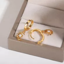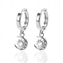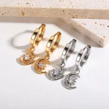 - Design: Elegant hoop earrings with zircon-encrusted star and moon pendants.