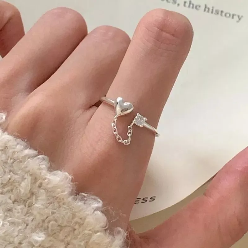 Introducing our Sterling Silver Zircon Heart Chain Ring – a unique blend of classic elegance and bohemian flair. Designed for the woman who loves to stand out, this piece combines the timeless beauty of sterling silver with the modern twist of an irregular heart design. Whether it’s for daily wear or a special occasion, this ring adds a touch of personality to any outfit.