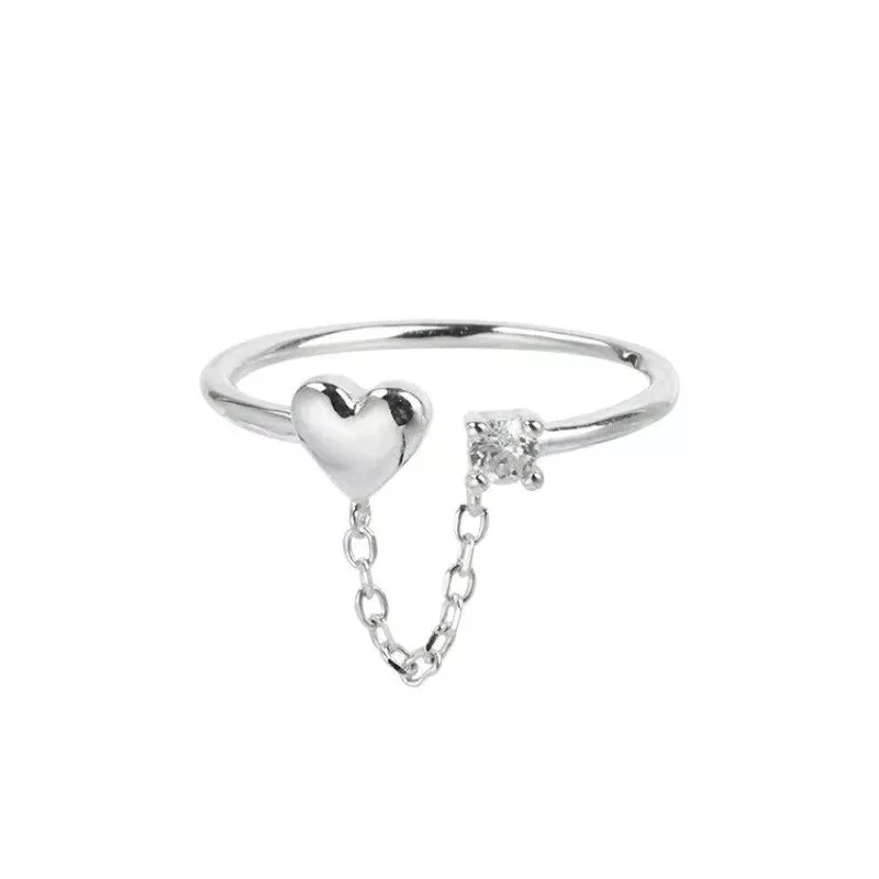 Sterling Silver Zircon Heart Chain Ring