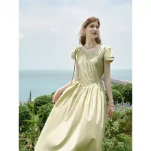 Embrace the essence of French vacation chic with our Summer 2024 Elegant Mid-Calf Green Cotton Dress. Perfectly designed for the sophisticated woman, this dress features a flattering A-line silhouette that gracefully sways with every step. Crafted from a soft cotton blend, this dress promises both comfort and style for any summer outing.