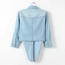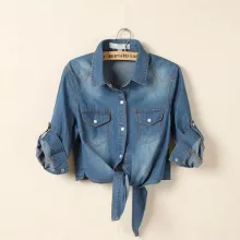 Embrace the warm vibes of summer with our denim crop top, tailored for the contemporary woman who loves to blend casual sophistication with comfort. This short-sleeve denim blouse is designed to add a dash of cool femininity to your wardrobe, making it a perfect staple for those sun-drenched days and breezy evenings. Its stylish open stitch closure and turn-down collar introduce a touch of laid-back elegance that can transition seamlessly from a casual day out to an evening with friends.