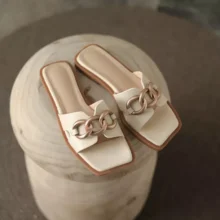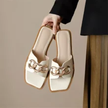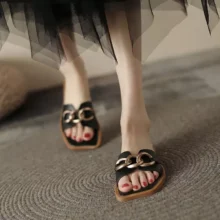 - Unique Design: Featuring a distinctive square toe and elegant metal decoration, these slippers are the epitome of modern style.