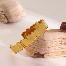 Introducing the stunning Waterproof 316L Stainless Steel Wide Cuff Bracelet, designed to elevate your jewelry collection with its modern and chic aesthetic. This bracelet features a unique textured finish that catches the light beautifully, making it the perfect accessory for any outfit. Crafted from durable stainless steel and plated with luxurious 18K PVD gold, this cuff bracelet is not just stylish; it is built to last, ensuring you can enjoy its beauty for years to come.