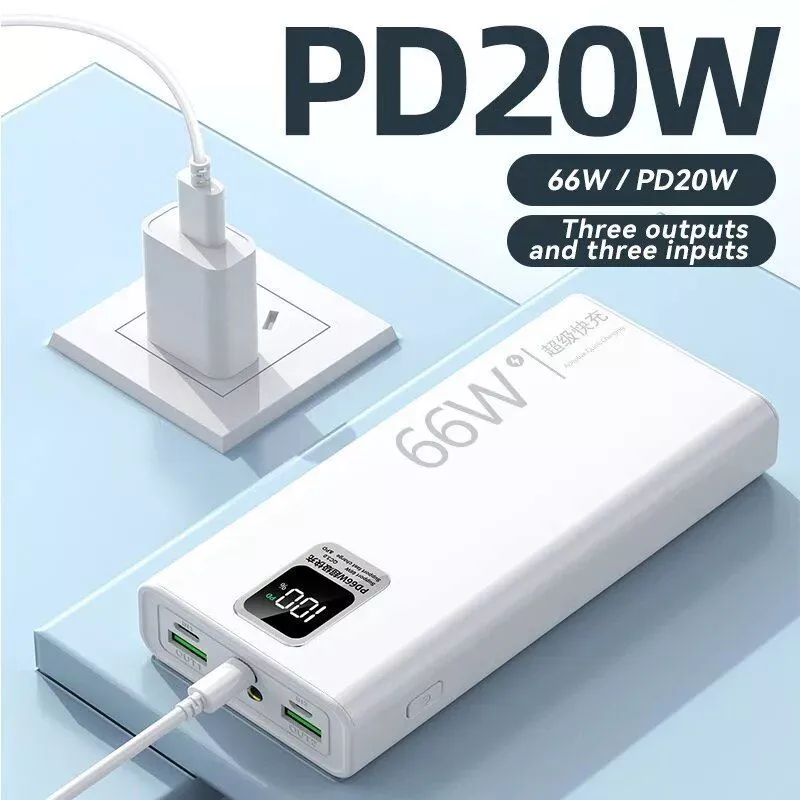 With an impressive 30000mAh capacity, our power bank is engineered to charge multiple devices with speed and efficiency. Its 66W Super Fast Charging capability makes it stand out, providing rapid power-up for your smartphones and tablets. The sleek digital display offers real-time updates on battery percentage, ensuring you’re never caught off guard. Durable ABS plastic encases the technology, and its compact size means it fits snugly in any bag or pocket. Whether you’re an iPhone, Huawei, Xiaomi, or Samsung user, this charger is universally compatible and comes with an LED flashlight for added convenience.