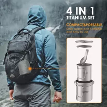 Our Ultralight Titanium Camping Cookware Set is more than just cooking equipment; it’s an essential part of your outdoor gear. The unique properties of titanium combined with thoughtful features like foldable elements and efficient heating, make it the perfect choice for the outdoors. Whether boiling water for a morning tea in the high mountains or preparing a nutritious meal by the lakeside, our cookware set ensures a reliable and enjoyable cooking experience.