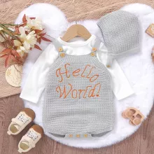 This cute 2-piece romper set features charming embroidered letters that add a fun and trendy touch to your baby’s wardrobe. Whether it’s for daily wear, a playdate, or a special family outing, your baby will not only look fashionable but feel incredibly comfortable. The square collar design gives this bodysuit a unique flair while ensuring an easy fit for your little one.